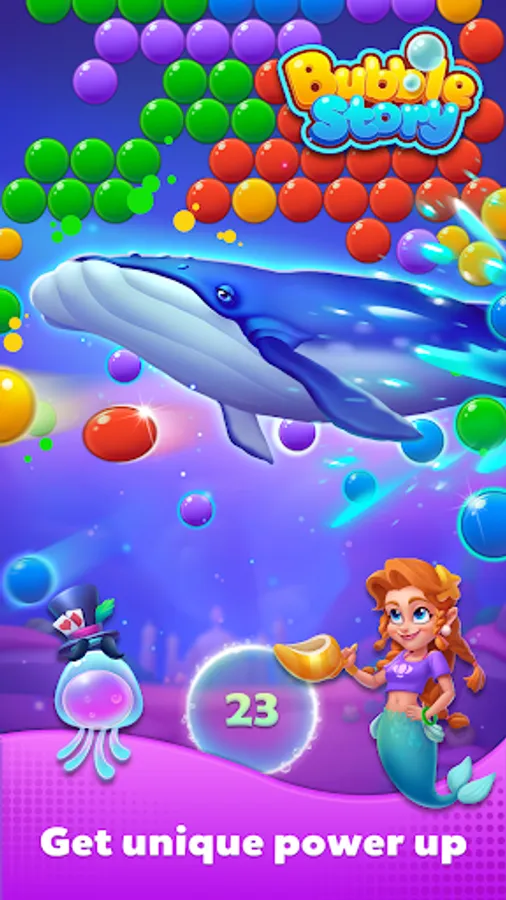 -Match 3 to pop bubbles of the same color, pop kinds of bubbles and win levels.