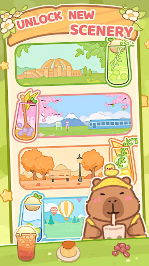 ⭐ Cute bubble tea Sort scene: The fresh and cute scene of hand-made lemons, paired with cartoon characters dancing to the rhythm, will make you feel like you are in a cat boba tea shop!