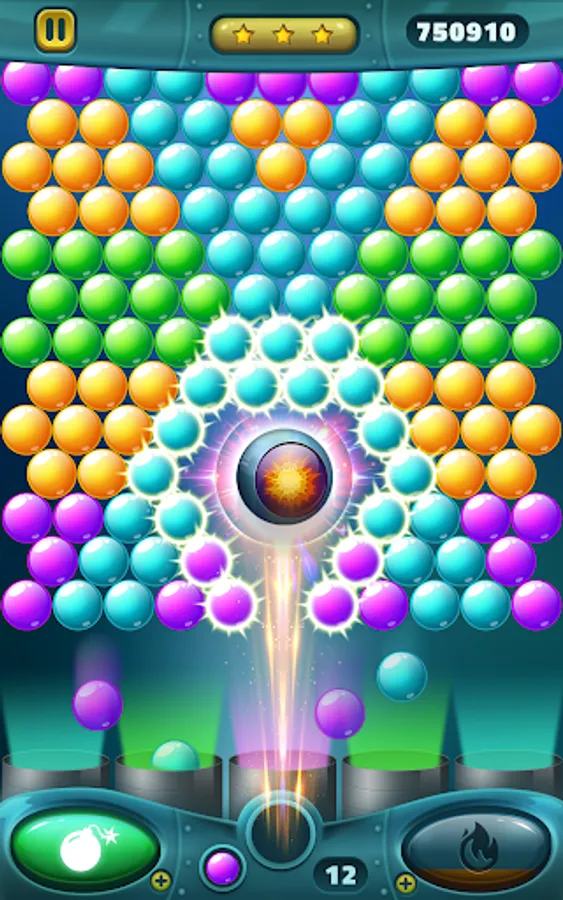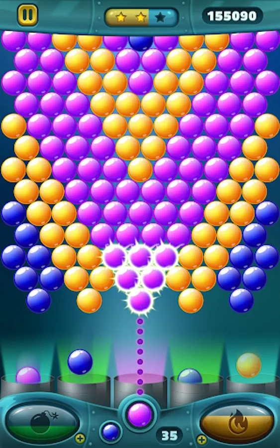 - Match at least 3 bubbles of the same color or more to pop the combo and win points.