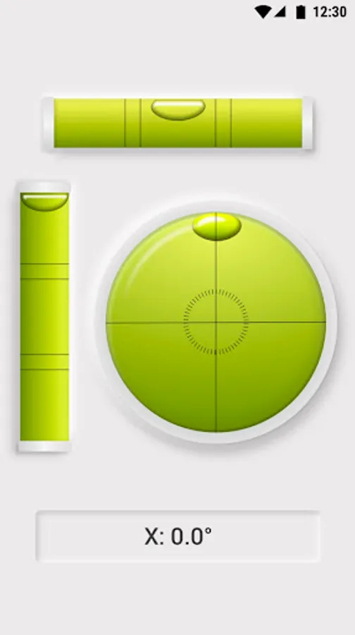 This leveler app indicates horizontal when the bubble is in the middle. It will show the actual angle in the meantime. Thanks to its sound effects, you can hear the result without looking at the screen.