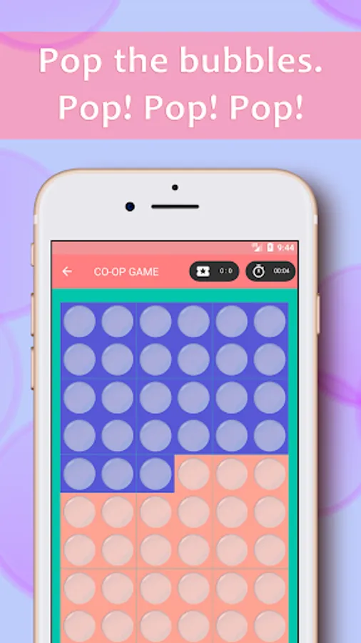3. CO-OP GAME is an exciting and unusual way to play this game for two players. Your phone is divided into two parts as a football field, and each of the participants should burst as many bubbles as possible. Who is the first winner?