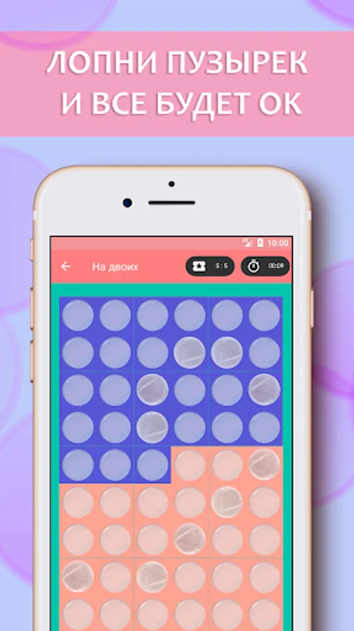 3) "For two". In this game two people play. Your phone is divided into two parts and each of the participants should burst as many bubbles as possible for a while.