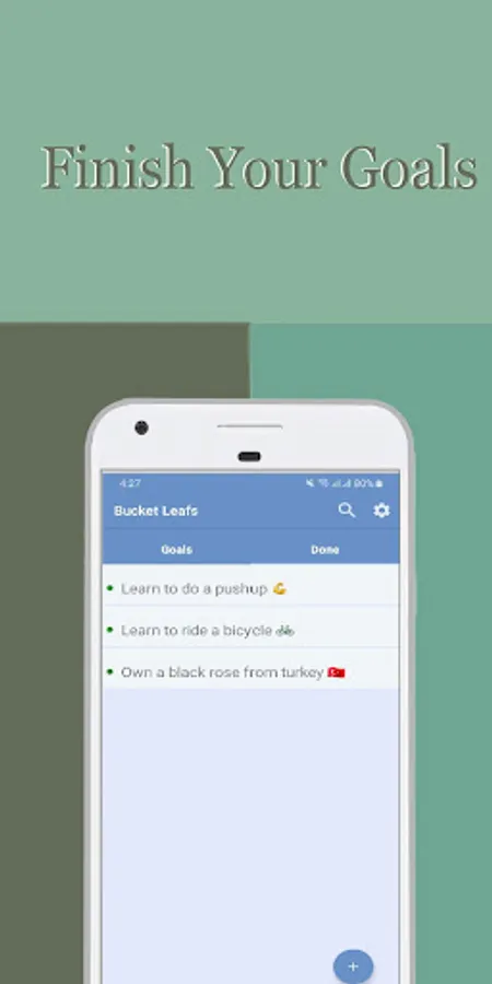This bucket list application also enables users to mark their finished and achieved goals as done . They can see it in an organized manner through the tab of done and not done goals .