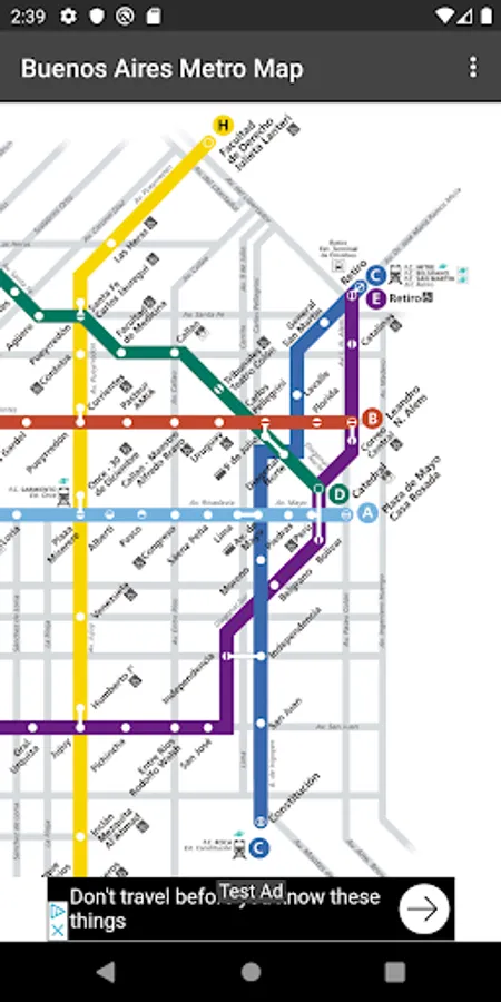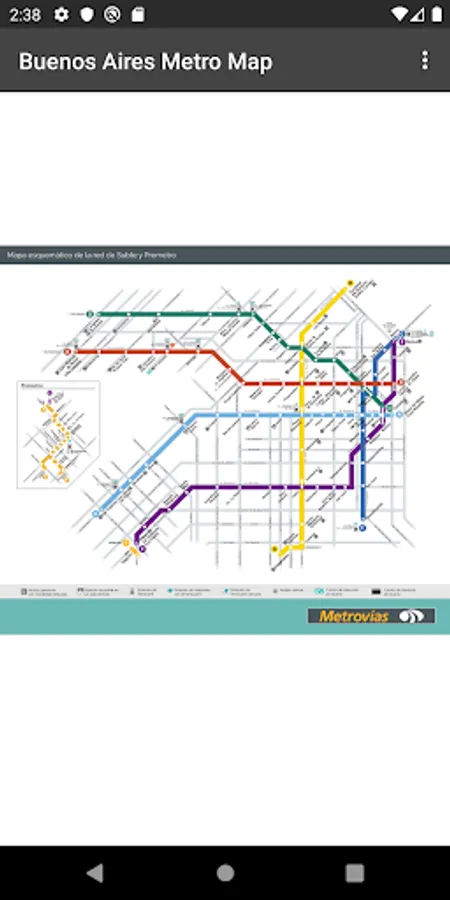The Buenos Aires map, no bells, whistles, or other complications. From the official Metrovias, you can zoom the subway map in, zoom it out, and that's all. Very simple and easy to use! Opens to the Buenos Aires map immediately so you can quickly decide if you need to hop on the train in front of you or wait for the next one. The app size is minimal for a quick download regardless of network speed.