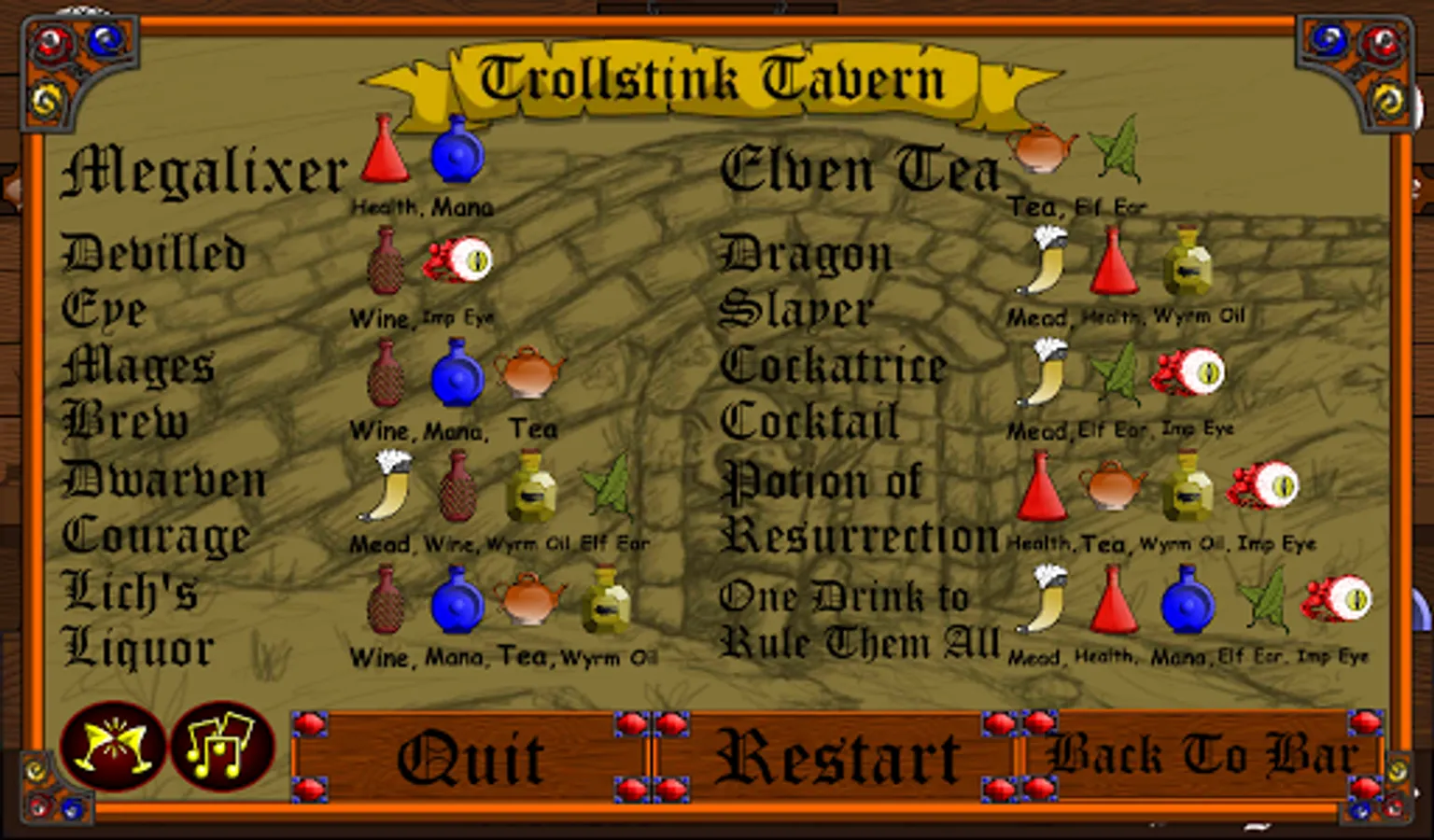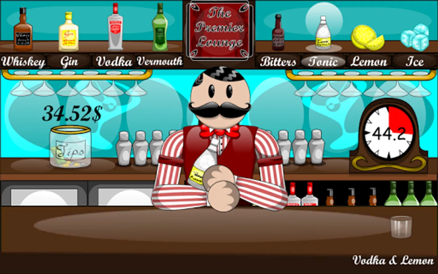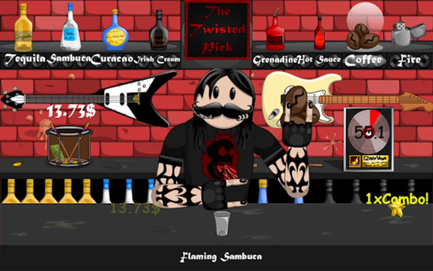 As a seasoned bartender you'll travel across time and space, quenching thirst when, where and whatever you are! Serve drinks from the classic Manhattan to the killer Voodoo Doll, through the magical Love Potion right to the unthinkable Decaying Corpse, and many, many more! Mix intrepid ingredients such as Sambuca, Sarsaparilla and Silicone, to earn tantalising tips in currencies such as Dollars, Gold or Souls! Battle the clock to brew potions and pick me ups to best the online highscore in 3, yes 3, different modes! With a spirit in hand and a jukebox filled with unique (yet strangely familiar) soundtracks, all these things and more can be yours!