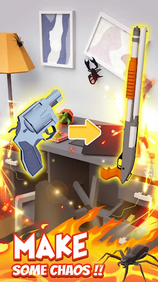 Chasing spiders to each gap and to each corner has never been more delightful. Kill them using all kinds of imaginative methods found in your favorite casual games. Whatever it takes! Darts? Not bad! Silly toy guns? Take 'em! Wacky gadgets? So great!🔫