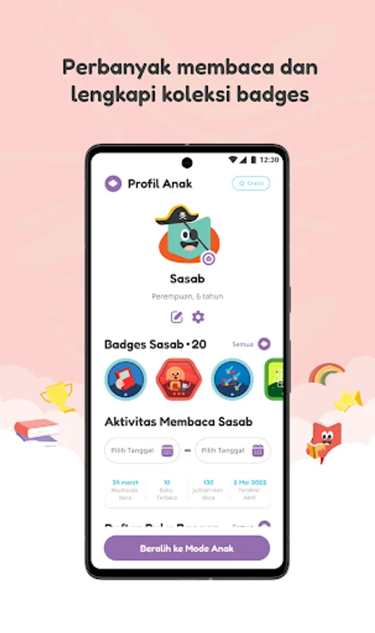 5. Badges keep kids motivated by rewarding children for reading milestones.
