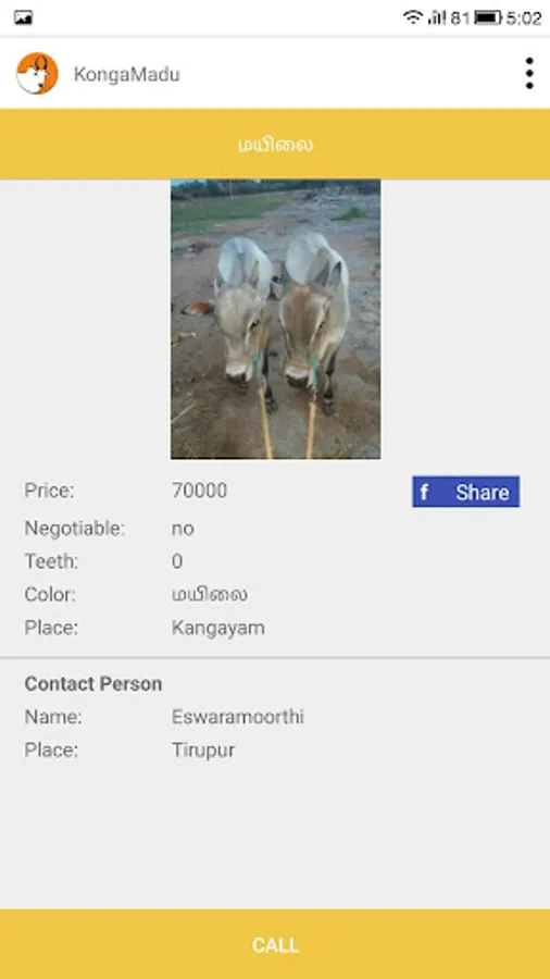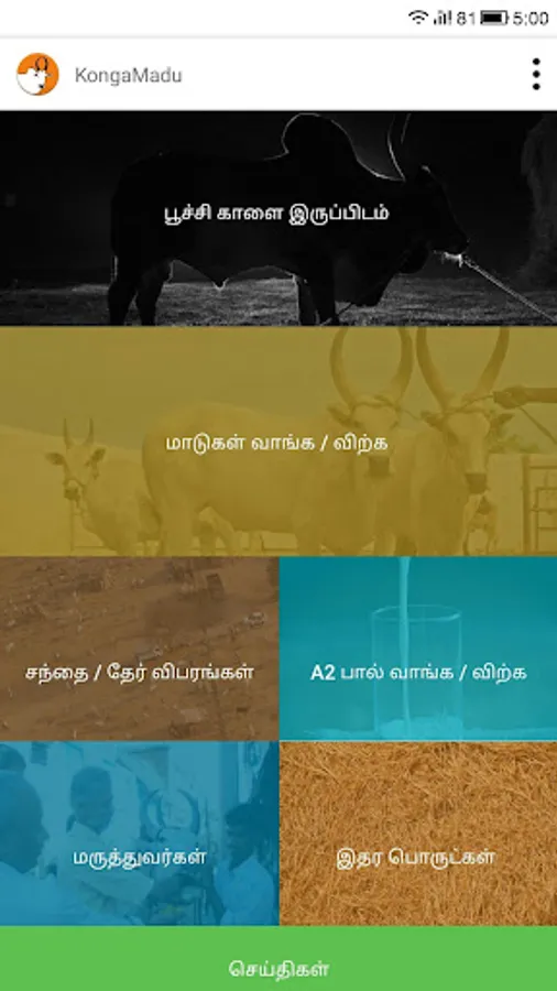 Konga madu app is a comprehensive one on Konga / Kangayam breed of Bos indicus / Zebu cattle. The app has features like Save the Cow, Cows Buy / Sell, Bull details around your area, Shandy & Event details, Latest News, Veterinary Doctors List, Buy / Sell A2 milk, Agricultural Products.