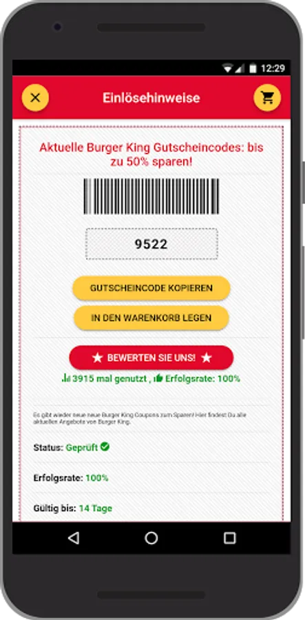 Die Gutscheine für burger king Gutscheine App ist dein Zugang zu Deals und Gutscheinen direkt auf deinem Mobilgerät. Werde Teil unserer Community und teile Rabatte und Tipps, die normalerweise so nicht in den Geschäften oder Flyern verraten werden.