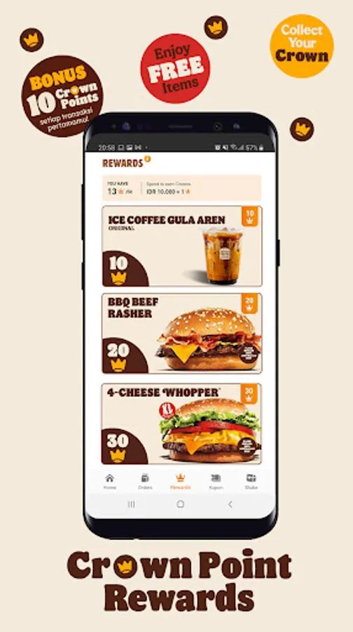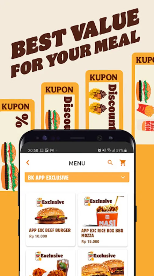 Find Burger King's selection menus, exciting games to get attractive promos, monthly coupons and collect crowns that you can use for transactions. Let's get ordering or visit the nearest Burger King restaurant!