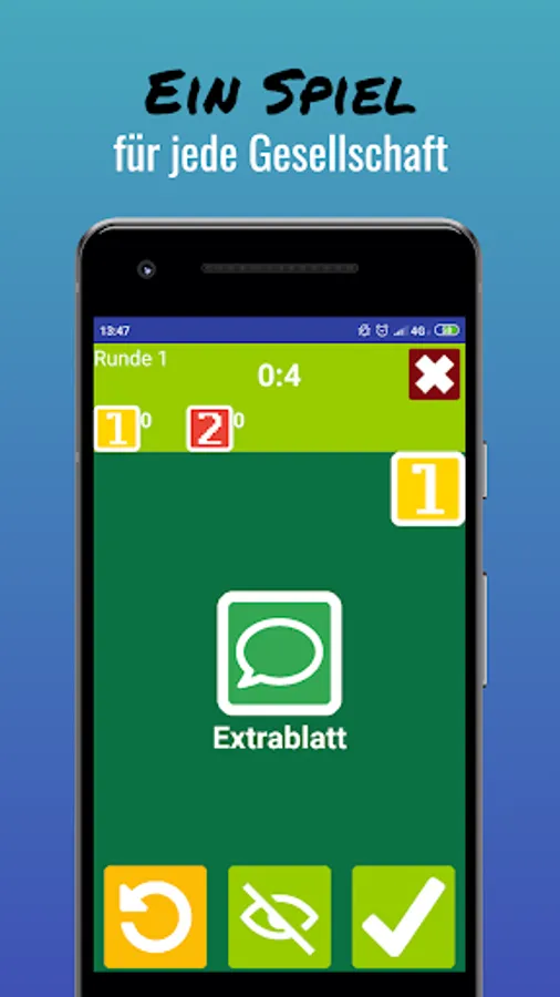 This board game is sure to be a lot of fun for you! Play in up to four different teams. Any number of people can be assigned to each team. So no matter how big the company is, everyone can take part! And if the words appear too difficult, there is also a "simple mode" in which the more difficult words are filtered out. So everyone, from young to old, can have fun with the app.