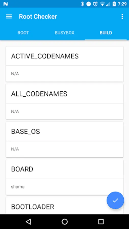 - Displays Android device's Build Information