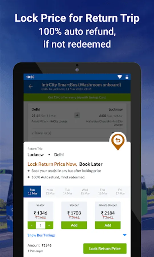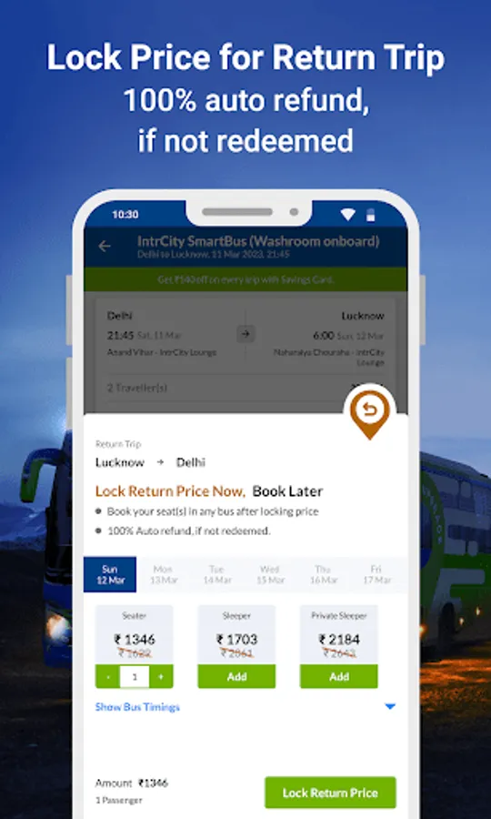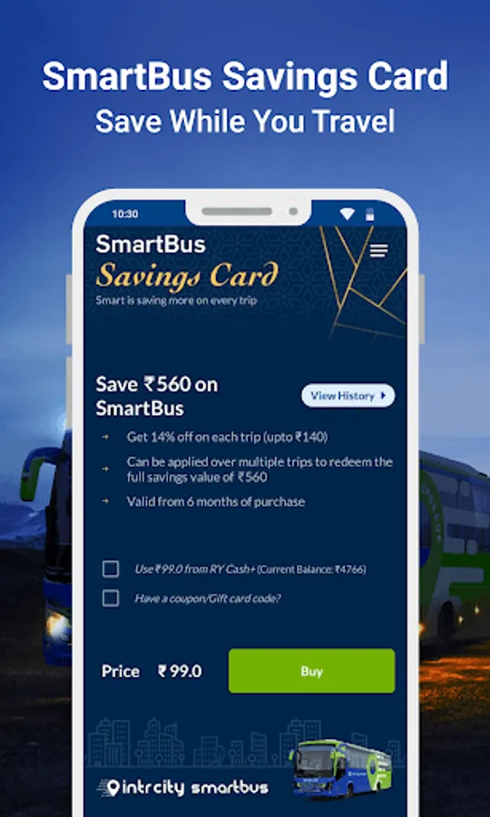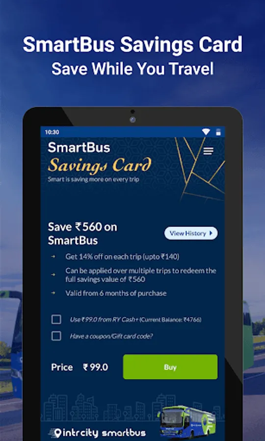 -SmartBus Savings Card also gives Rs.140 off on every trip, helps saves up to Rs.560 (Availed by 50% of our users)
