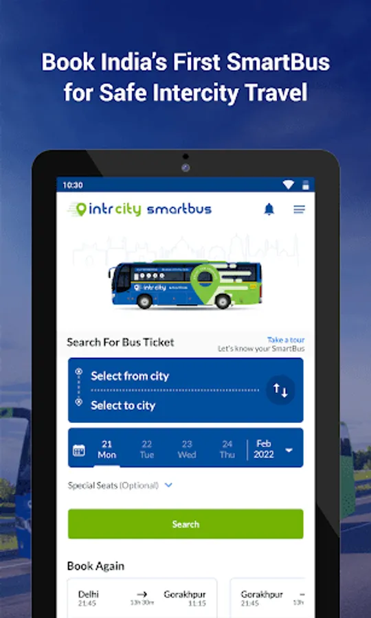 IntrCity SmartBus is India’s 1st fleet of branded buses with a pan-India presence for intercity travel. We ensure hygienic and safe travel with our clean and sanitized buses, professional drivers & trained bus crew. You can book buses online via our app or our website - www.intrcity.com