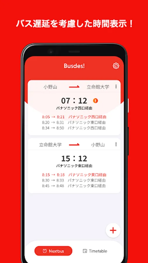 ついに立命館大学生向けのバスアプリがリリースされました!!リアルタイムでのバスの接近情報や、平日/休日の時刻表がすぐ見れる!!さらに、途中のバス停の情報も自分でカスタマイズ出来る!!