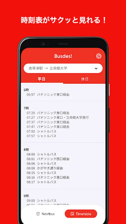 ● 南草津駅-立命館大学の平日/休日の時刻表データの表示
