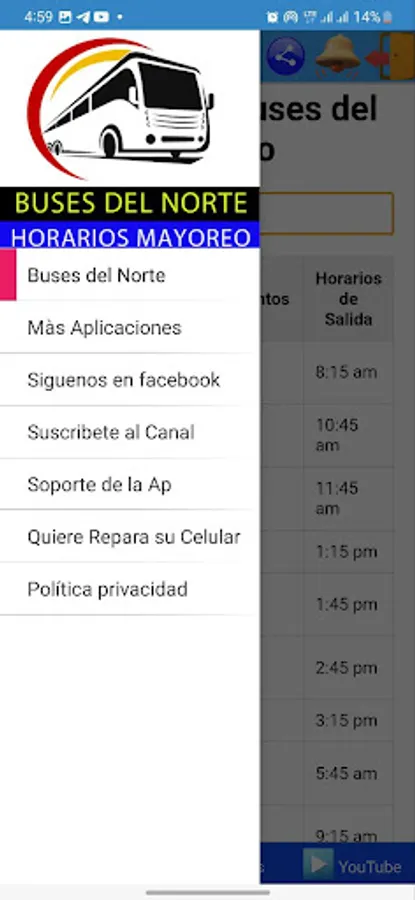 It is an application aimed at Nicaraguans and tourists who visit the North of Nicaragua. To see the Schedules of the Buses that leave the Wholesale for the North of Nicaragua. There are all the departments of the North of our country. You can find us on facebook and subscribe to YouTube.