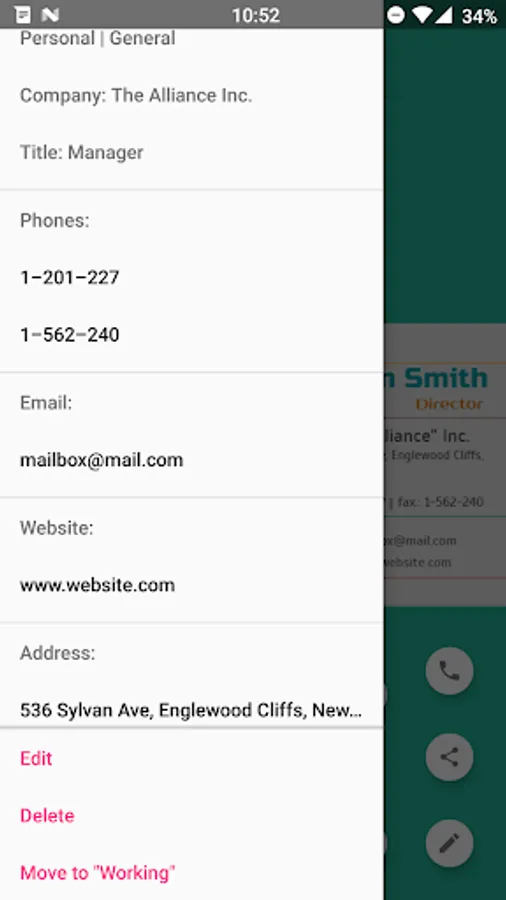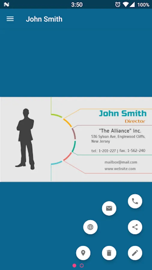 Attention! The free version has a limit on the number of saved business cards (20 pcs).