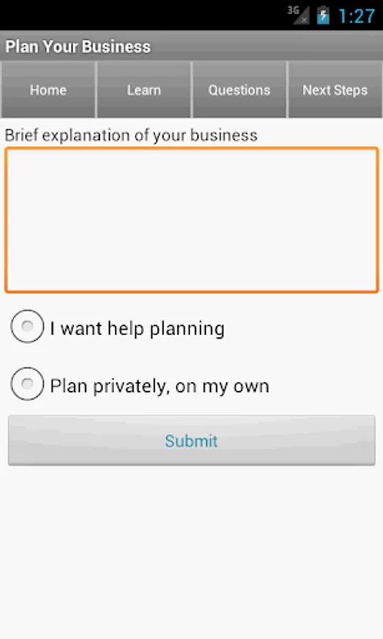 And if that wasn't enough, there is also a software tool on the app which helps you create a small business plan for of your business idea. It is a good idea to create a small business plan just for yourself to help you organize your ideas.