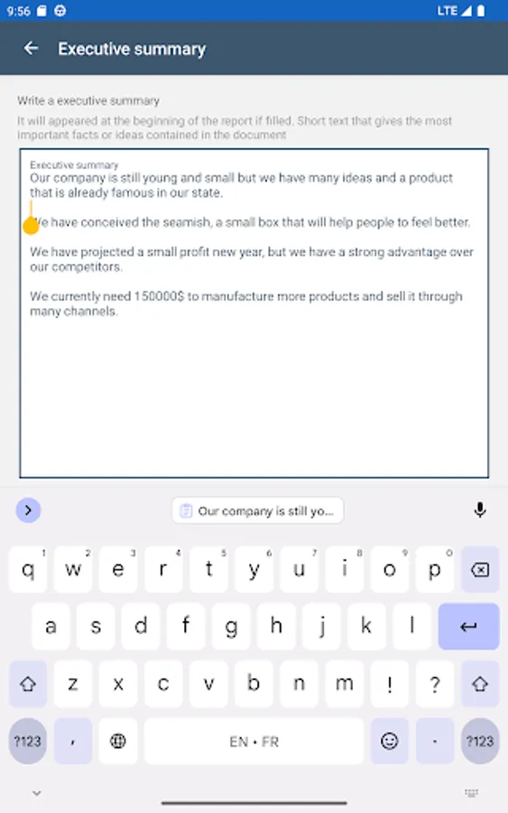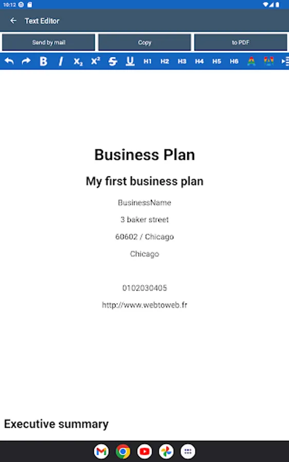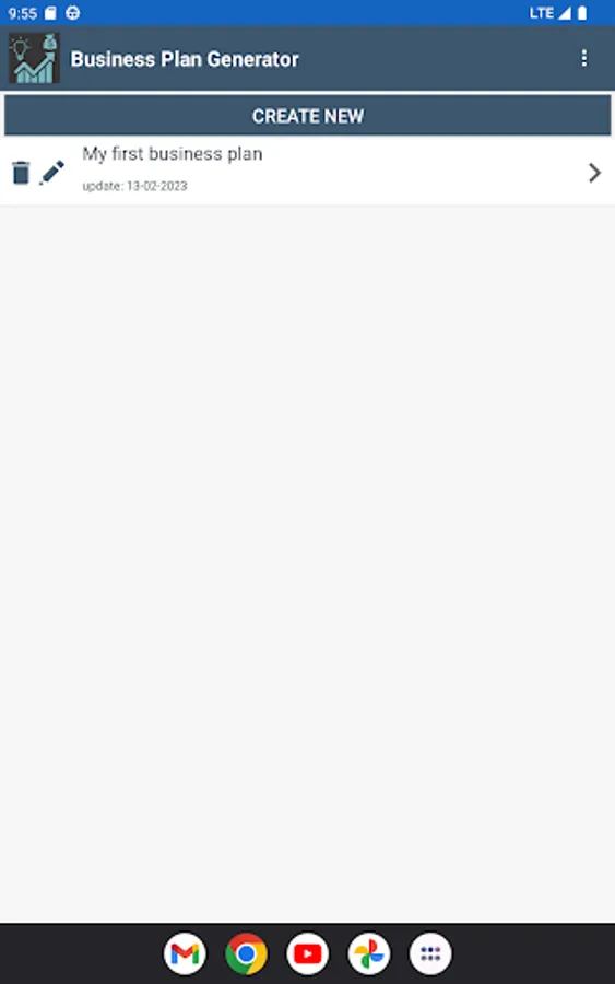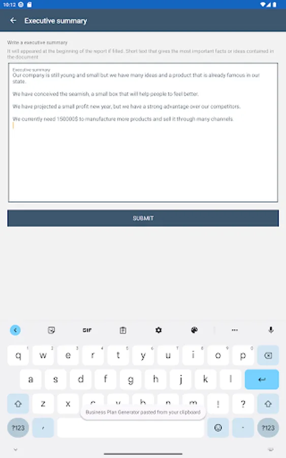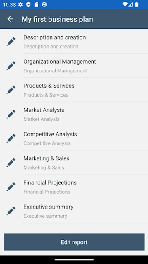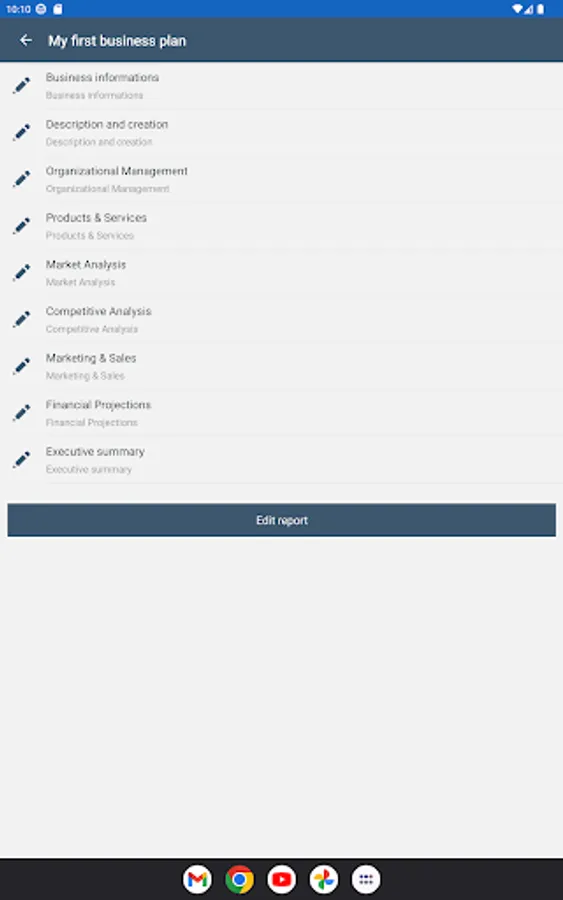 Application to create a business plan in 9 steps and generate a final report.