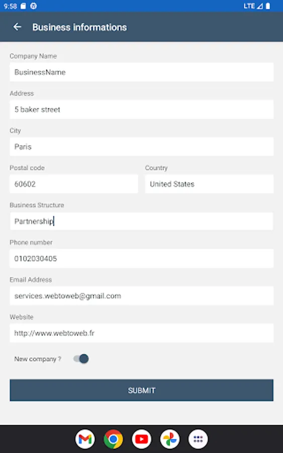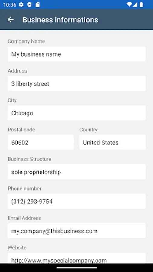 - Commercial information: main information about your company such as its name, address and contact details