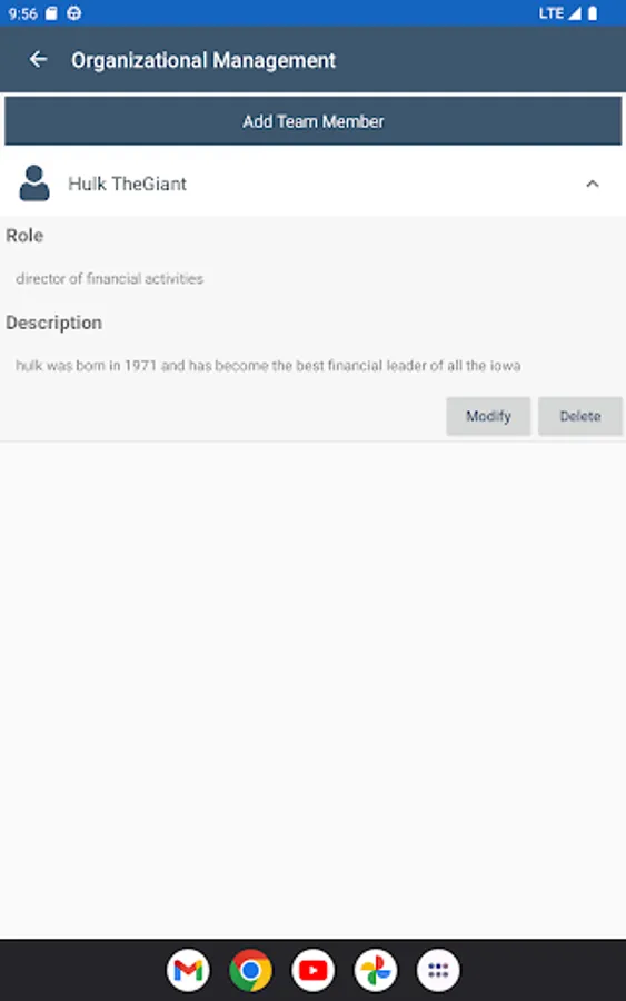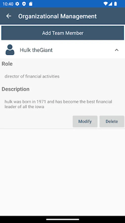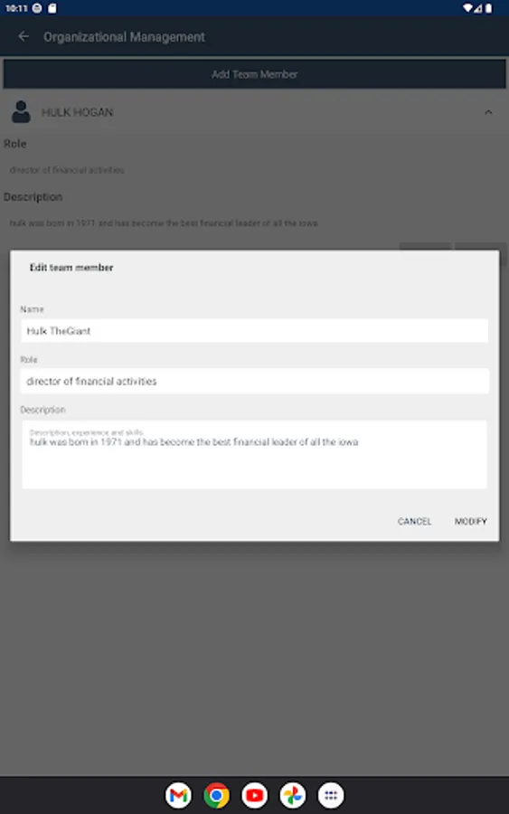 - Organizational management: describe the most important members of the company