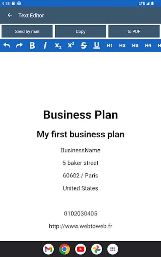 All you have to do is fill in the various forms and a report will be generated. It can be sent by mail, copied to the clipboard or converted into a pdf document.