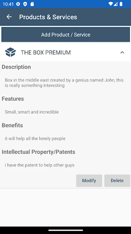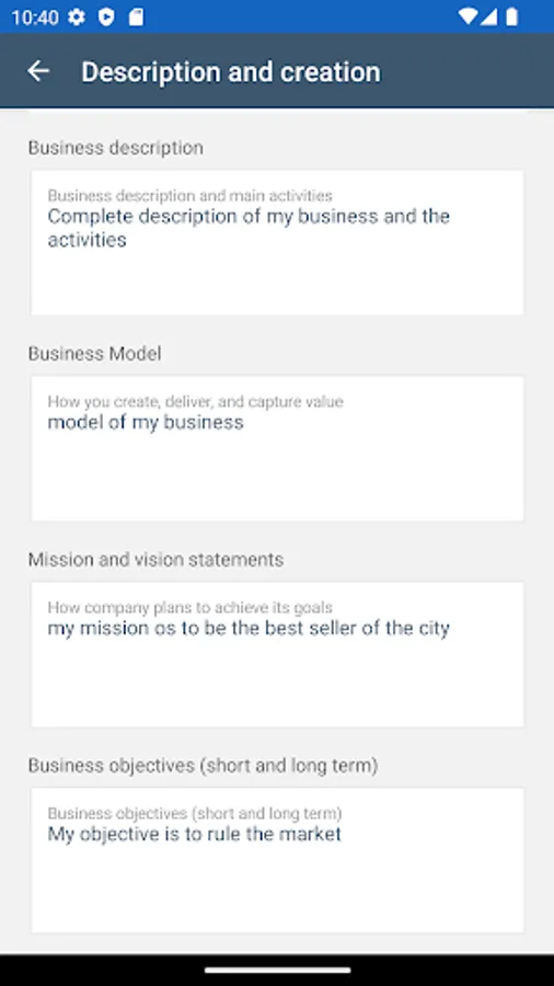 - Description and creation: information regarding activities and type of industry, market information can also be explained