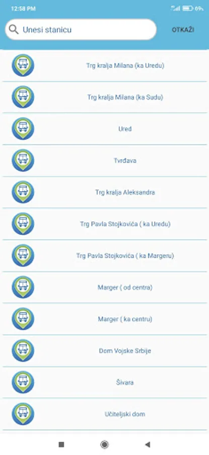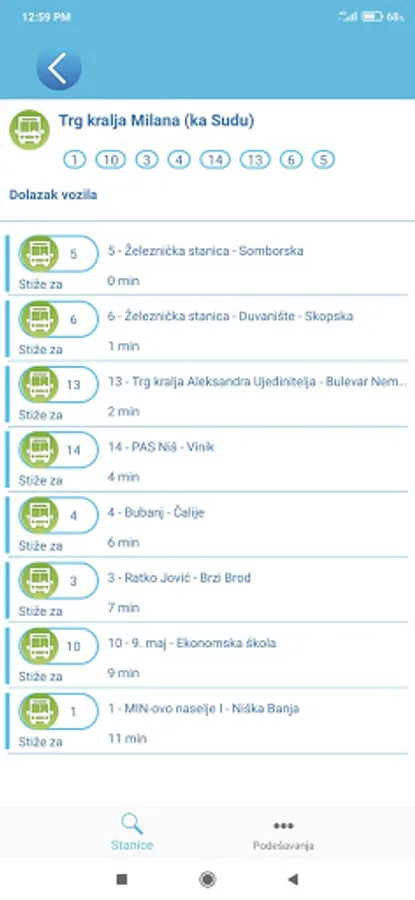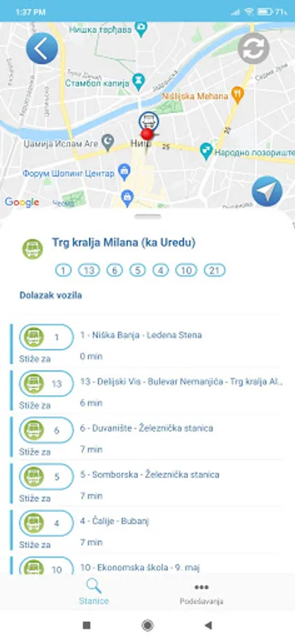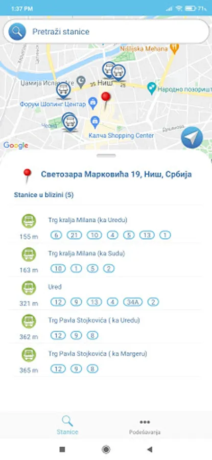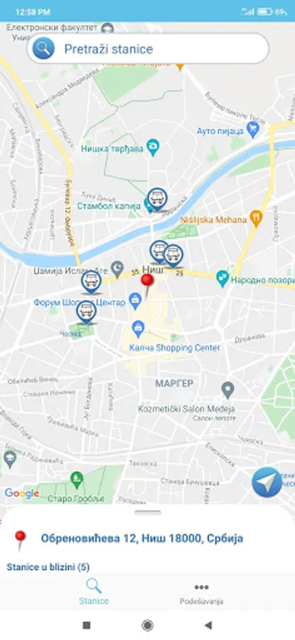 Search for bus stops in the city of Nis