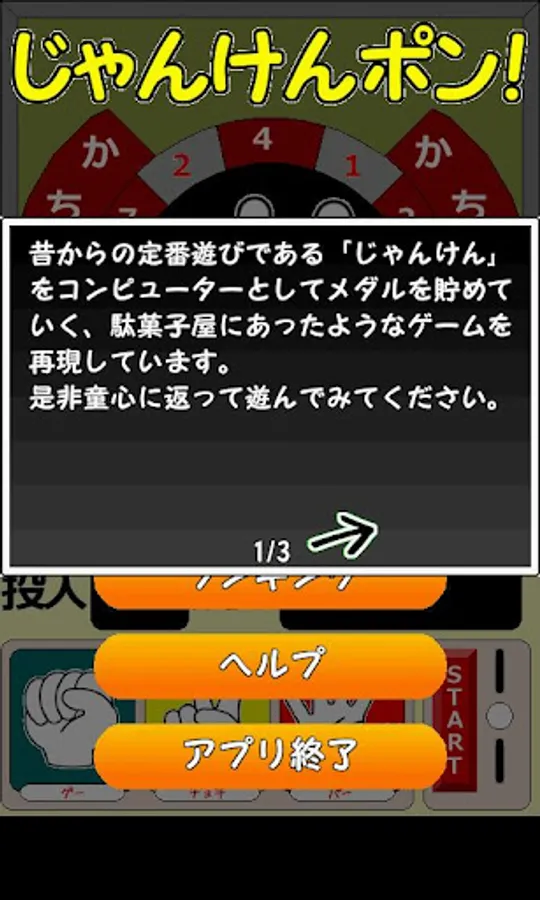 A game which collects the medal by using as a computer "janken" which is time-tested play from ancient times and which was in the mom-and-pop candy store is reproduced.