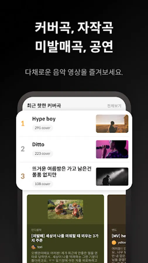 Enjoy a variety of new music videos beyond music sources, from social media verbs to cover songs, self-composed songs, and performances.🎧