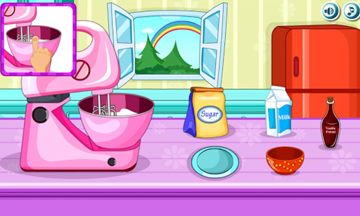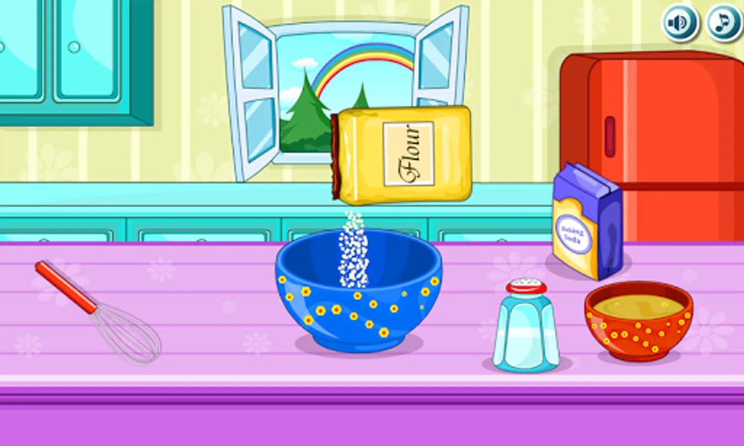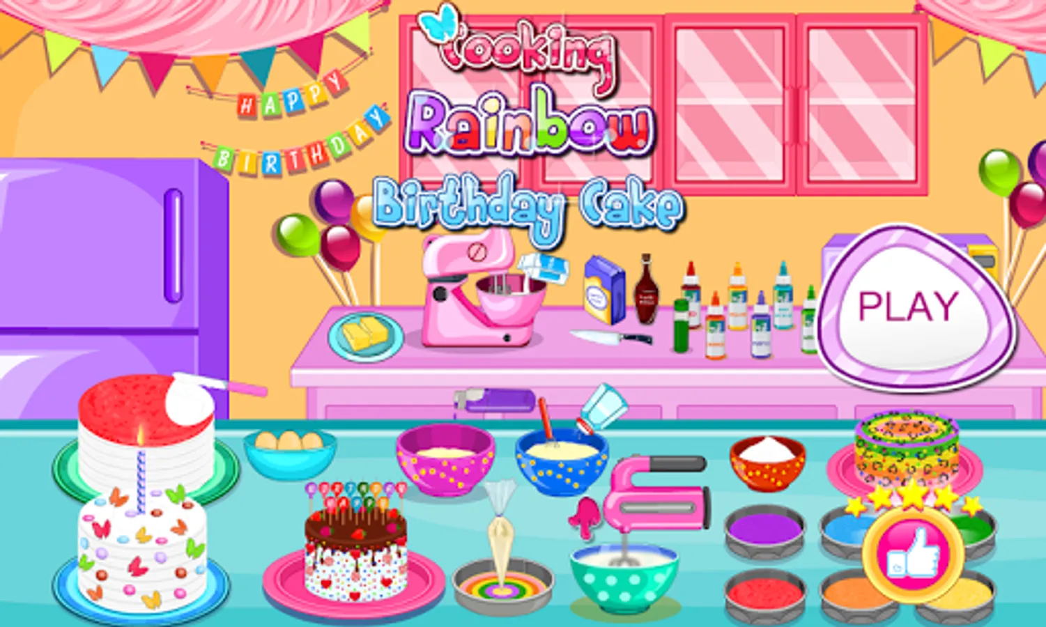 Bring some color into your life with this rainbow birthday cake cooking game. Cook your rainbow cake by mixing the ingredients, adding the food coloring, cooking your cakes in the oven along with decorating them with yummy sweets. So much color to be found upon eating, why not surprise your guests at your next birthday party and bake a rainbow birthday cake!