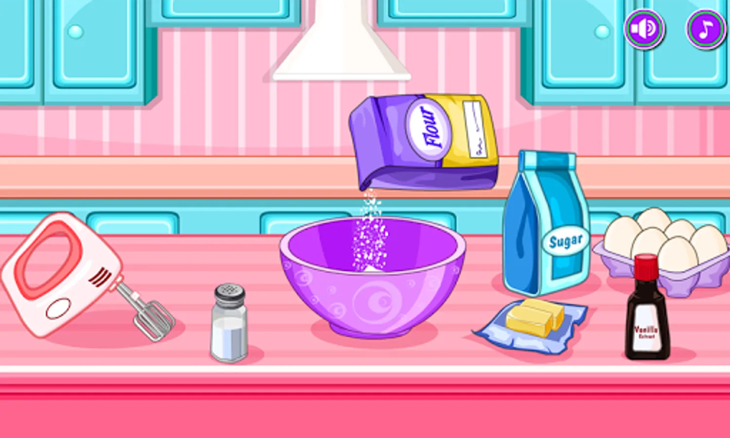 Cook ice cream cone cookies like a real baker with this cooking game! With this baking game you can mix your ingredients to make your cookies and icing, cut your cookies out into ice cream shapes before decorating them with yummy sweet icing and frosting. Eat them all up and make them again with this baking game