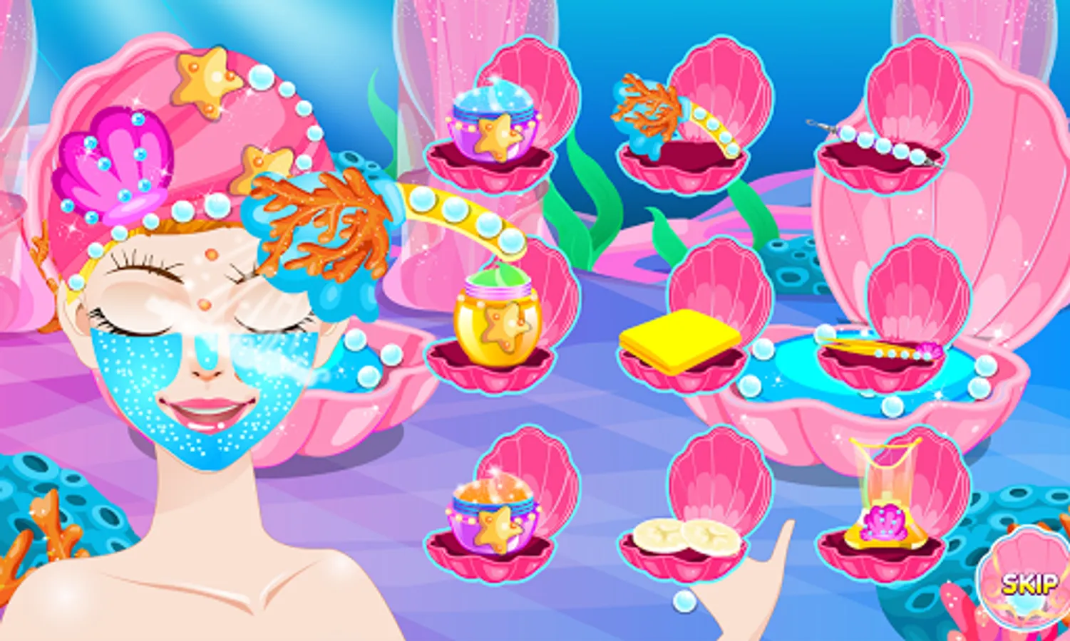 Pamper your mermaid friend like a real salon! You can give her a lovely facial to make her skin smooth, apply makeup, accessorize her new look before showing it off to all your friends. When complete take her back to the salon all over again for a brand new look with this fabulous makeover game.