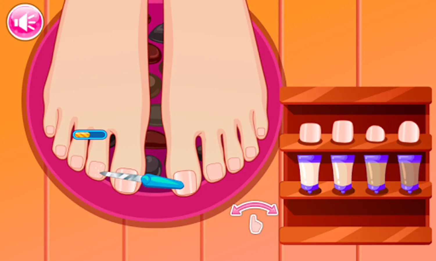 Going to the nail salon is exciting and Princess Pedicure Salon brings all the fun to you with this clever game. You can apply polish, do nail painting and more without having to worry about the smell of stinky feet! Before you get started, you must care of the feet. Once this is done, you are free to decorate as you please. The best part is that you get to admire your awesome work once you are done applying the nail designs and colors that you prefer!