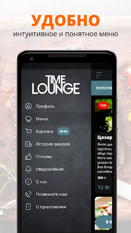 Time Lounge App | Borisov is a convenient way to order food to your home or office!