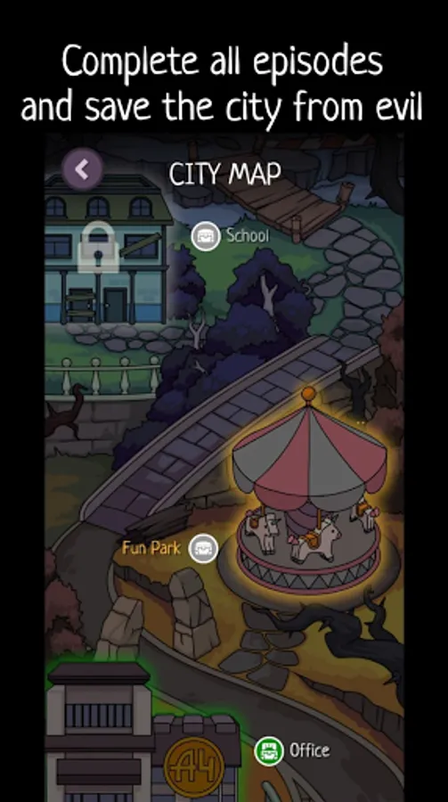 This city was called Joyville. But one day it was covered by the dome of darkness. Now it's Chaosville - the city of horror. The darkness turned this place into an anomalous zone and transformed the residents into terrible monsters. Abandoned buildings, ugly beasts, and other creepy stuff on your way. Your mission is to return the sun to the city and destroy the dome of darkness. How? - Be creative to find magic artifacts and collect gems of kindness.