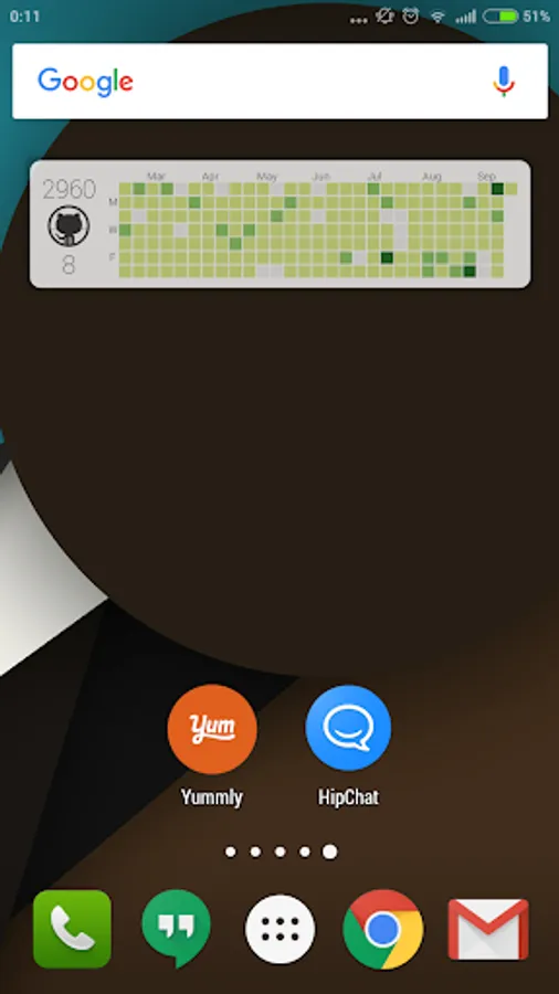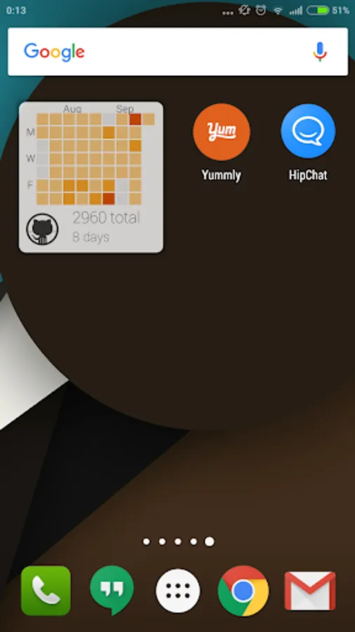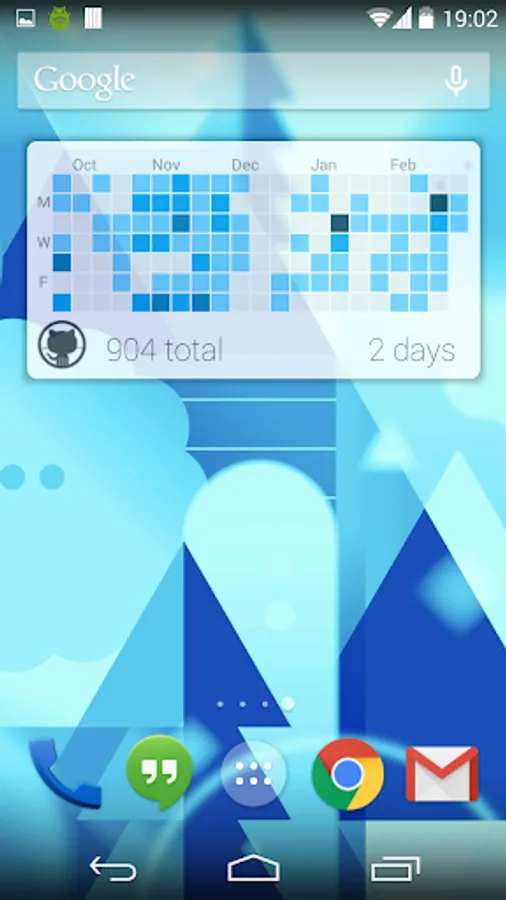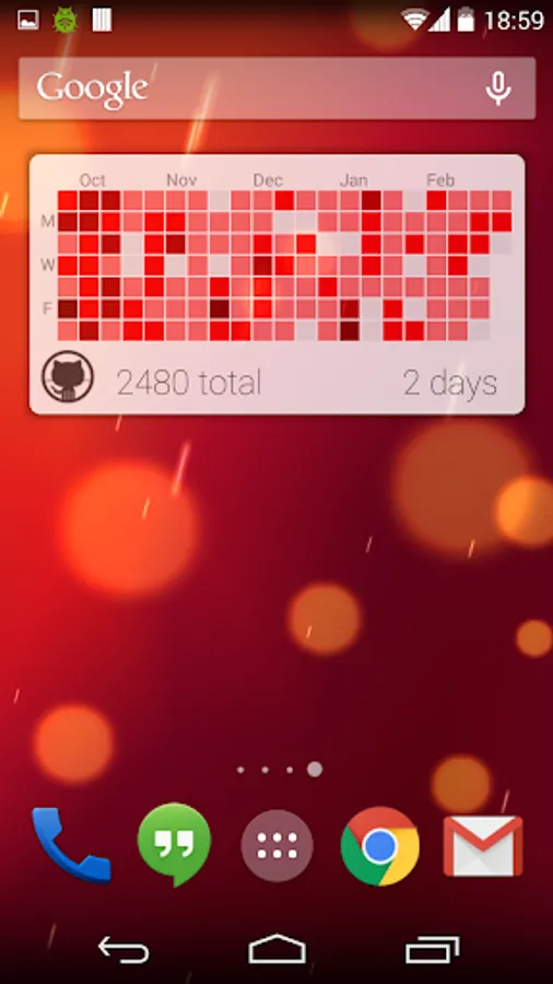 This simple widget shows your GitHub contribution activity over a chosen amount of time. It has a few different color themes to better fit your homescreen style.