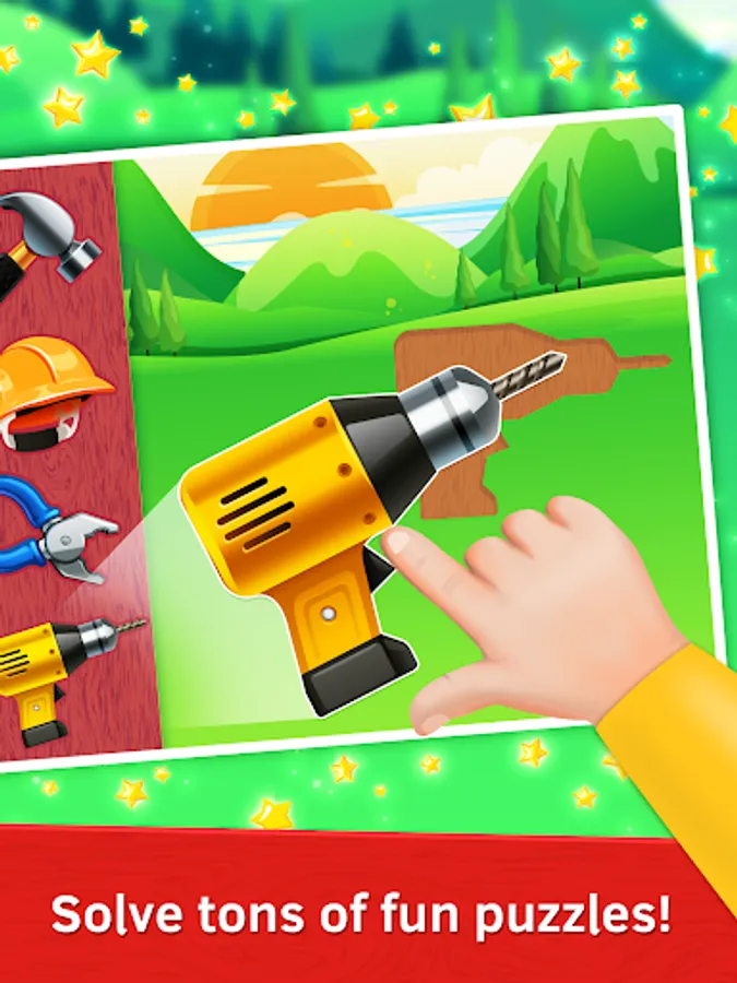 Hey, little explorer! Welcome to the puzzle game full of tools and gadgets! Let your child explore this fascinating world in a really fun and educational way!