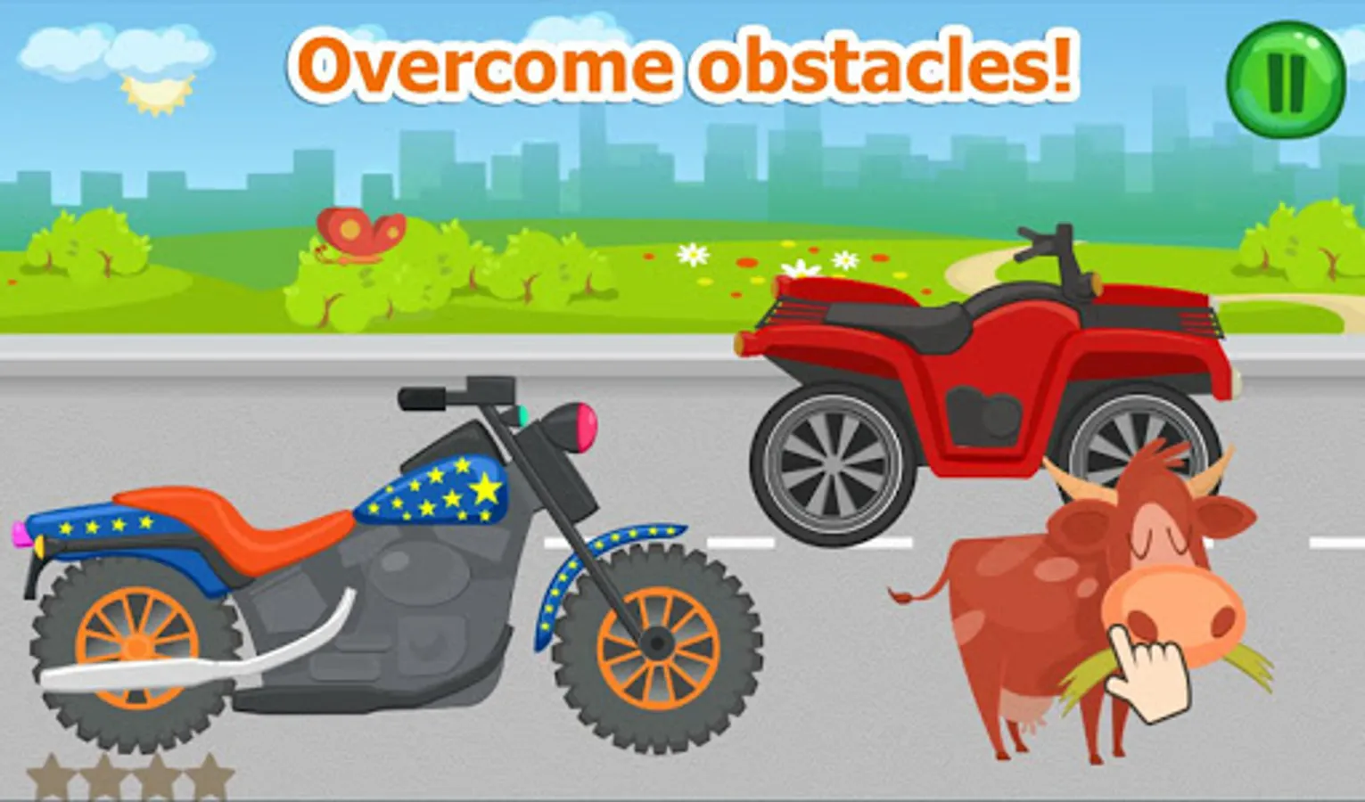 One of the game’s features is that it’s possible to cross the finish line watching the game as a cartoon but chances to win substantially increase if children interact with the game. Kids don’t have to decide on how to overcome the obstacles on the way. Instead, they should pay attention to difficulties that appear on the road and tap them while the car teaches your child the best way to come through.