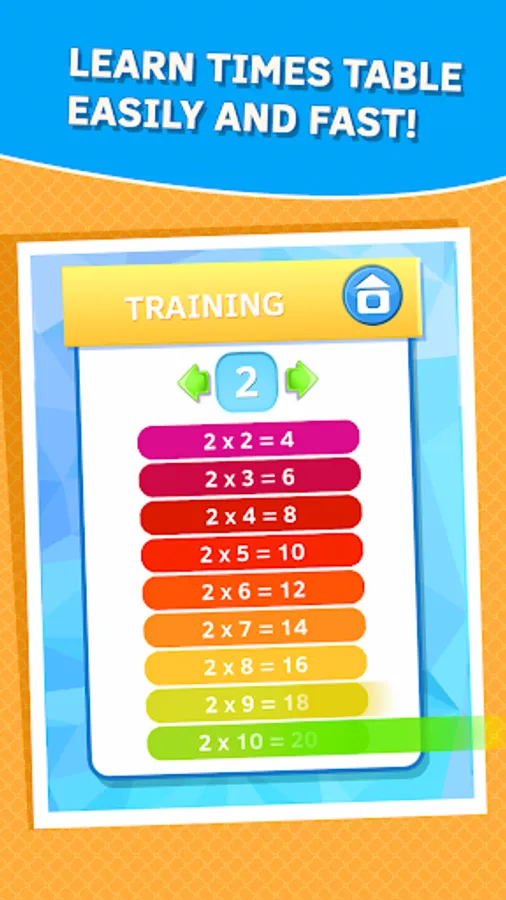 - Endless game play in the mode times tables quiz. Go back to any learning stage whenever you want