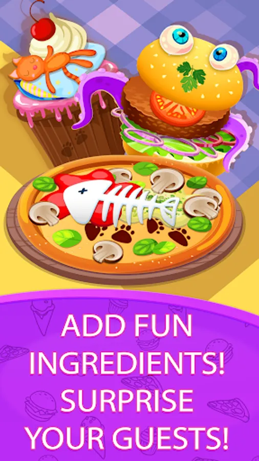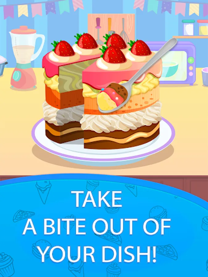 • Four levels to choose from: burgers, pizza maker games for kids, cupcakes, and baking cakes games free for kids
