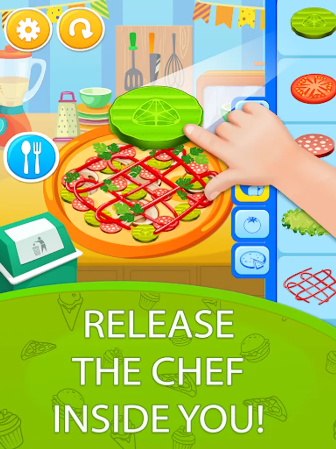 • Master your cooking talent with kids cooking games for age 2 and 3. Make your creativity work;