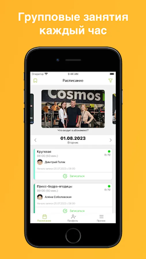 Get information about your training records, promotions, bonuses and super-offers of the CosmosFit fitness club network.