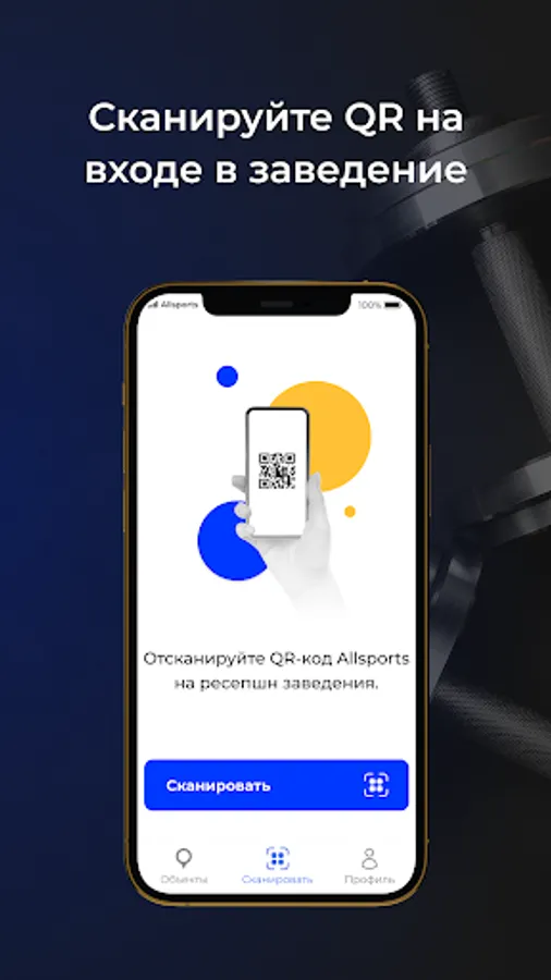 You don't have to carry your Allsports card with you, just scan the QR code at the reception of the sports facility, get confirmation from the administrator and start your workout!