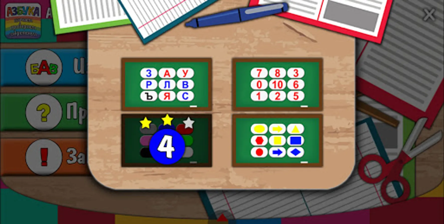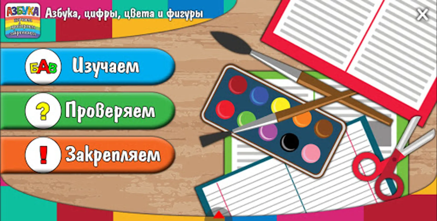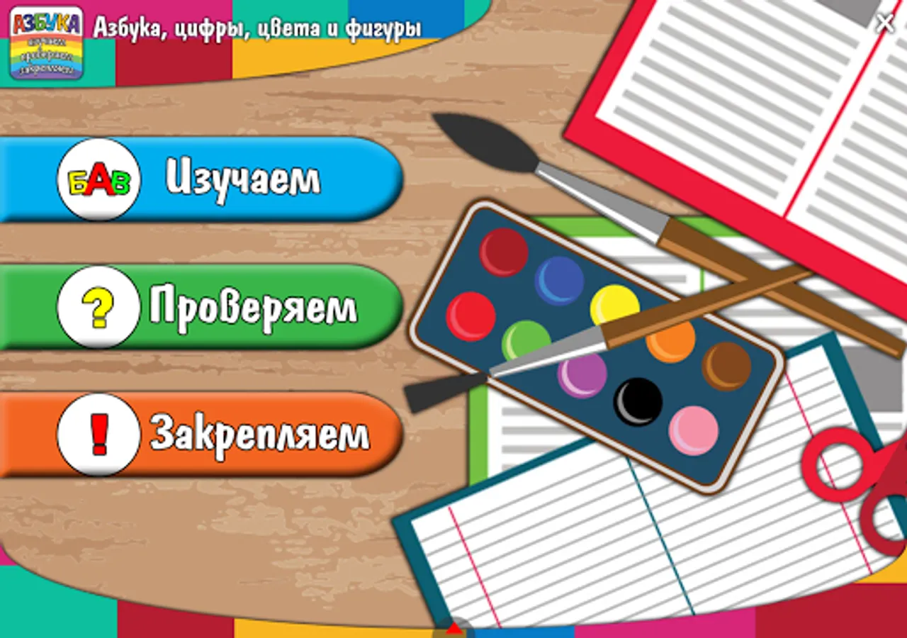 A unique free educational application for preschool children, with the help of which kids can quickly learn the alphabet (Russian alphabet), get acquainted with numbers and counting, learn basic colors and common shapes.