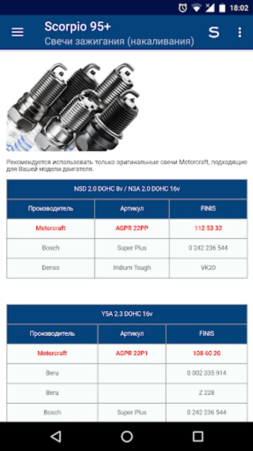 "Scorpio 95+" will help you find factory spare part numbers and their analogs without having to access the Internet.