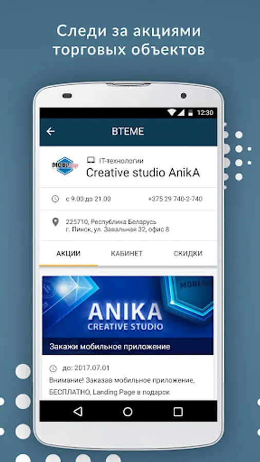 If you want to launch a discount service in your city outside the Republic of Belarus, please contact studio@anika-cs.by.