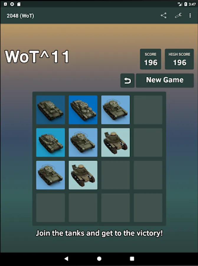 Swipe to move the tanks. When two tanks with the same touch, they merge into one.