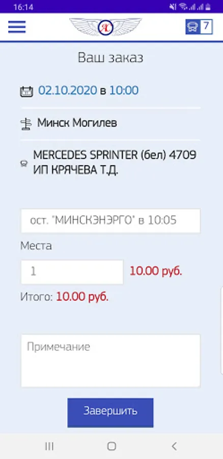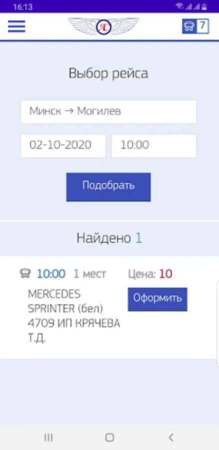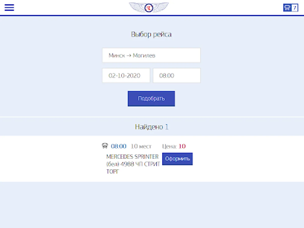 The AutoSlava application allows you to issue a ticket for the minibus Minsk Mogilev and back.